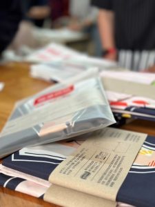 與真善美基金會合作 由老憨兒處理堅果空罐後 重製為精美用餐圍兜 贈予桃園市政府與嘉義縣政府社會局