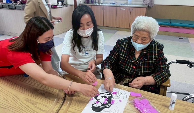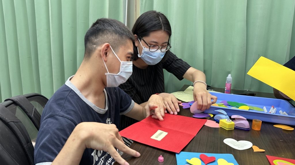 剛好那天有位壽星,我們把圍兜當作生日禮物送他,他抱著禮物笑得合不攏嘴,現場每個人都被那份純真打動。嘉義場則透過與失智長輩的閒話家常,共同創作卡片,長輩們漸漸打開心房,細細訴說生活點滴。