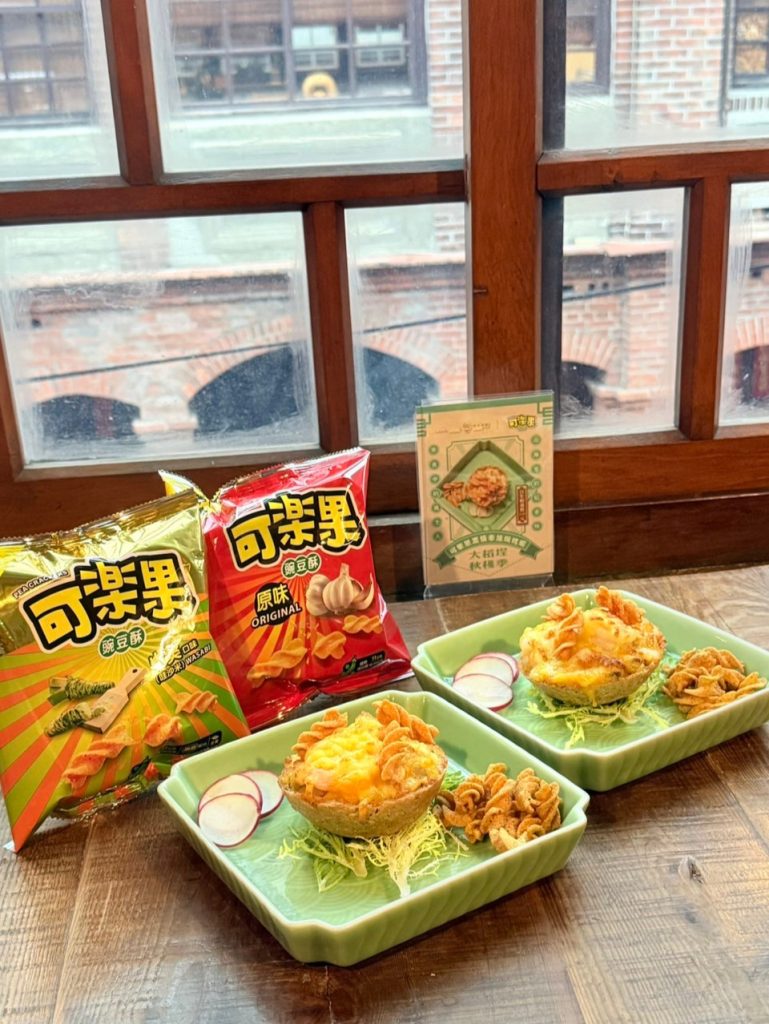 坐落於老稻米的集散地,稻舍這次以酥脆芋絲盅為基底,將新鮮白蝦與濃郁起司一同焗烤。起司的牽絲口感完美襯托可樂果的經典蒜香,帶來層次豐富的味覺享受。