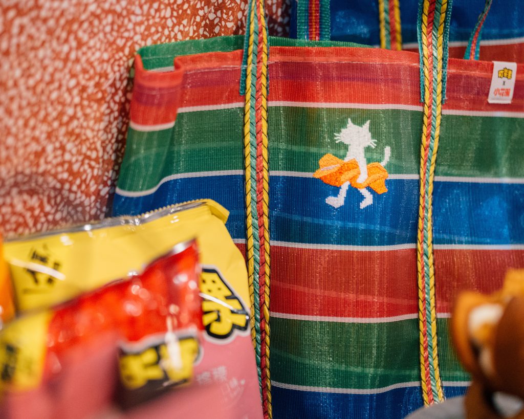 大稻埕作為觀光客聚集的街區,吸引不少外國遊客旅人,將台灣經典的茄芷袋融入可樂果元素及傳統刺繡,設計結合大稻埕常見的街貓意象,呼應秋穫季的代表動物,從材質到圖案,都是台灣在地元素的再詮釋。