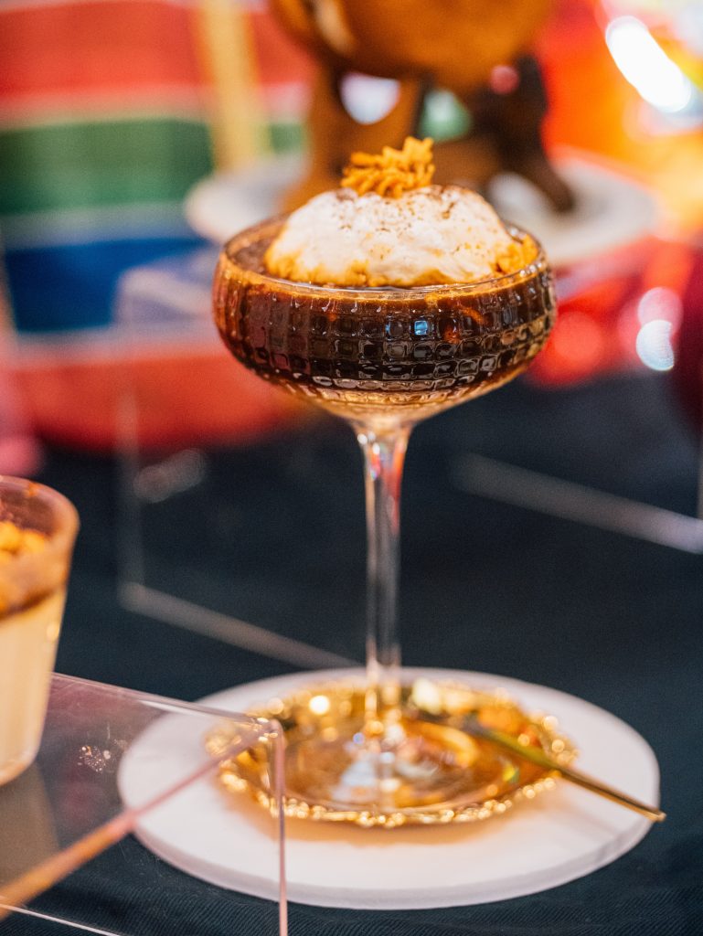 香濃黑糖緩緩淋上布丁,再撒上檸檬玫瑰鹽可樂果碎片,布丁入口柔滑與花香、果酸、脆鹹交織,呈現出專屬迪化街的台式甜點。