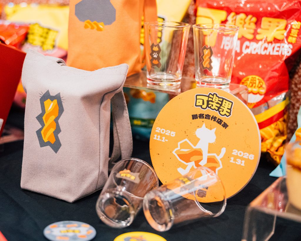 以「可樂果配酒」的實用情境聯想出發,將品牌元素延伸至啤酒杯與開瓶器設計,打造具趣味性的生活選物。
