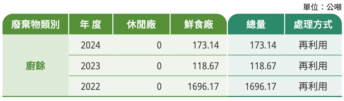 聯華食品自 2018 年起配合政府政策,實行廚餘回收再利用,委託擁有合格處理證的處理業者配合廚餘的運送處理,使廚餘受到管制,避免發生異常情形,讓廚餘能合法進入廢棄物再利用系統。
