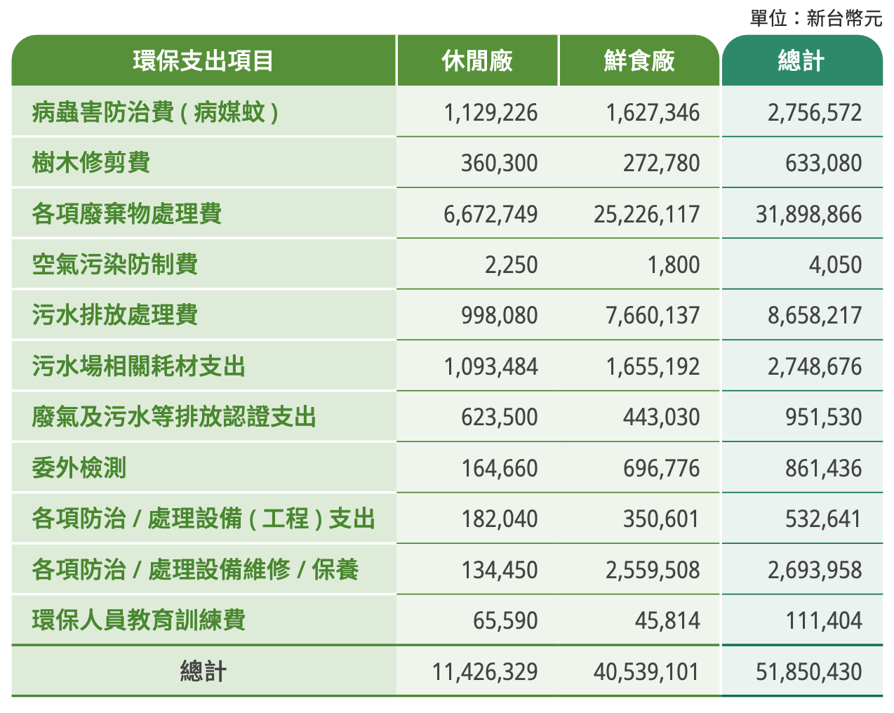 聯華食品主要生產廠區分屬於鮮食廠 ( 基隆廠、中壢廠、彰化廠 ) 與休閒廠 ( 桃園廠、嘉義廠 ) 兩大部分,為善盡環境保護的社會責任,投入經費辦理相關環境保護工作,包括各項廢棄物處理費、污染防治費用、環保教育訓練費… 等,近年持續針對汙水處理流程優化作業,減低汙水廠汙泥產生量,持續達成永續經營之理念。