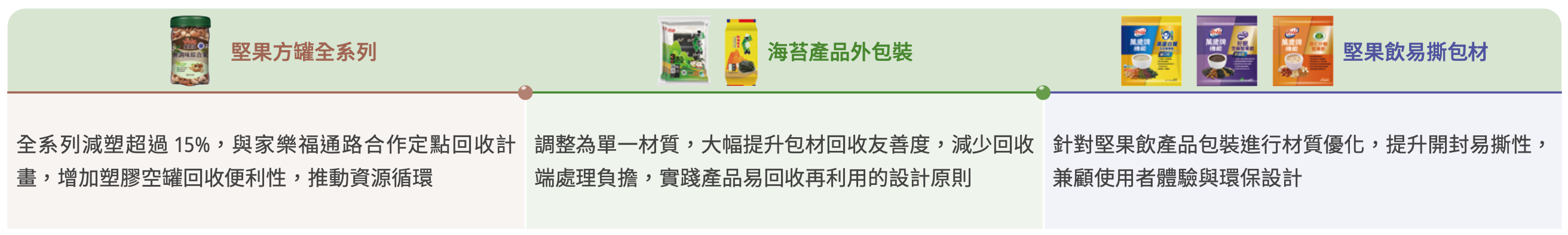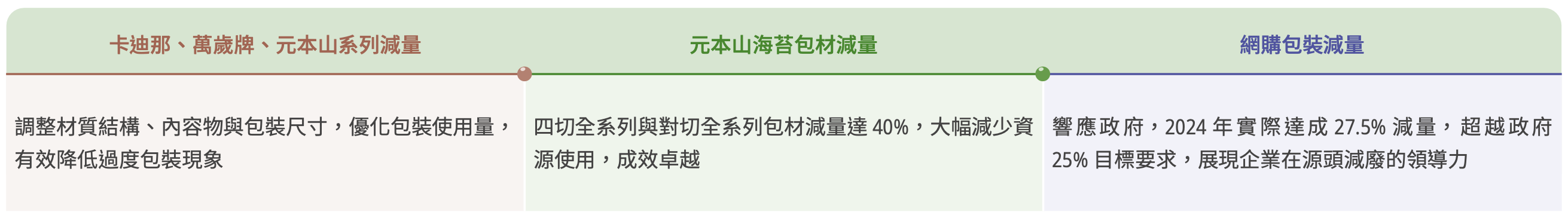 為強化源頭減廢,聯華食品持續推動物料最佳化與包裝精實計畫,2024 年度成果包含: