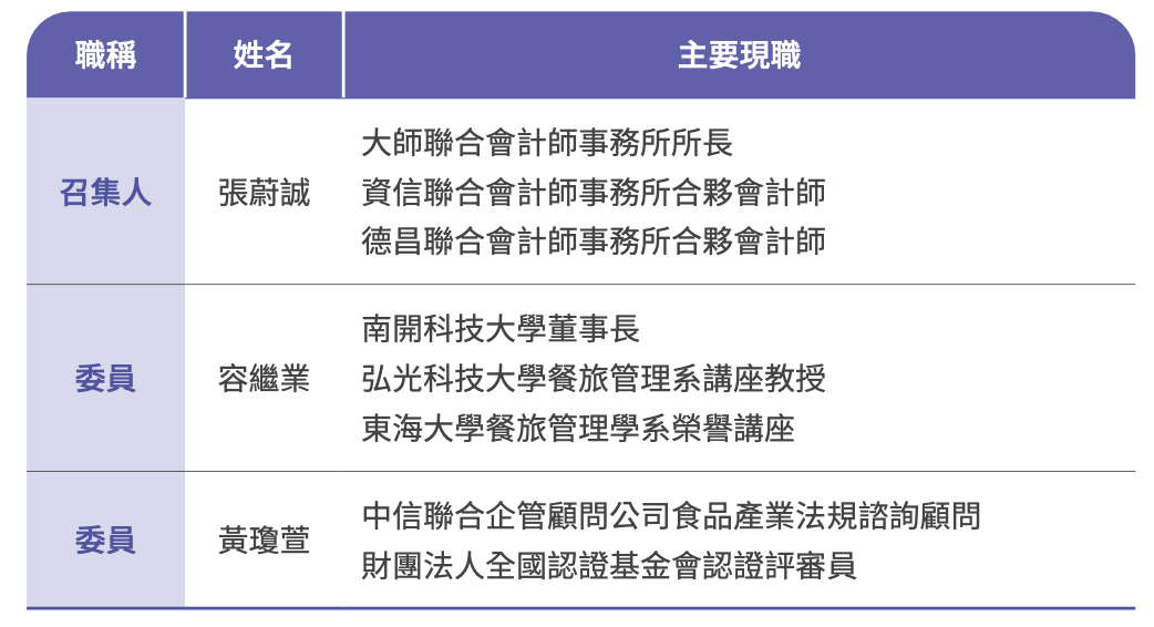 聯華食品依法設有審計委員會,旨在協助董事會履行並監督公司確實遵循相關法令,並依規定忠實行使職權。該委員會由全體三位獨立董事組成,至少每季召開 1 次委員會。 2024 年共開會 5 次,召集人與成員實際出席率為 100%。委員名單如下:
