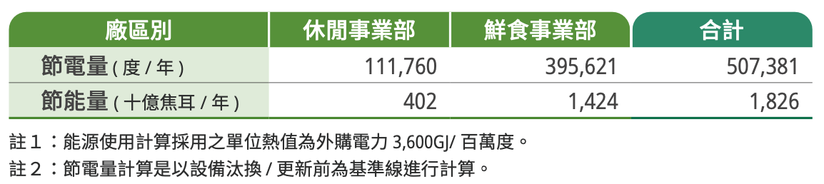 註:聯華食品於 2024 年的總節電率為 507,381÷36,907,174 = 約 1.375%,達成公司訂定 1% 的節電目標。